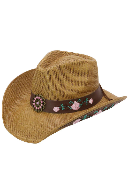 Pink Rose Concho Belt Embroidered Cowgirl Hat
