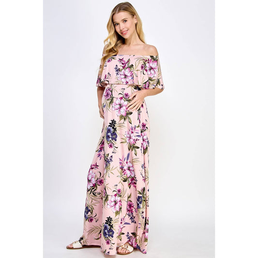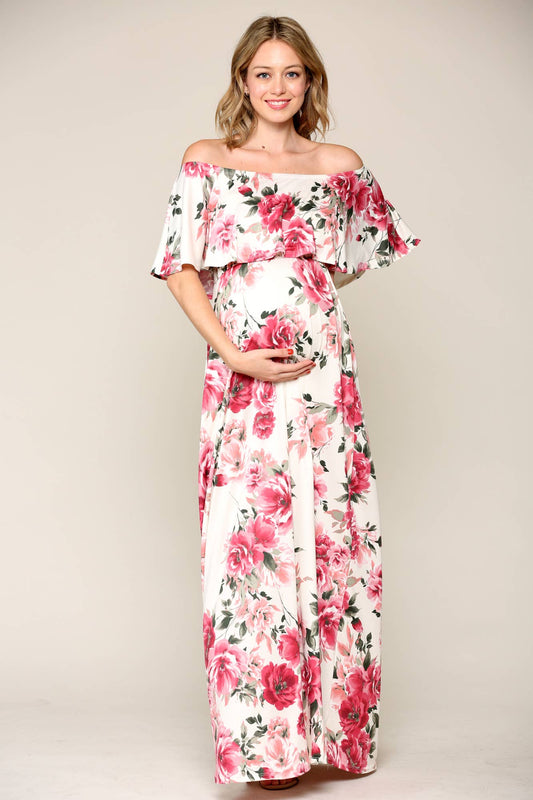 Pink Floral Off The Shoulder Maternity Maxi Dress