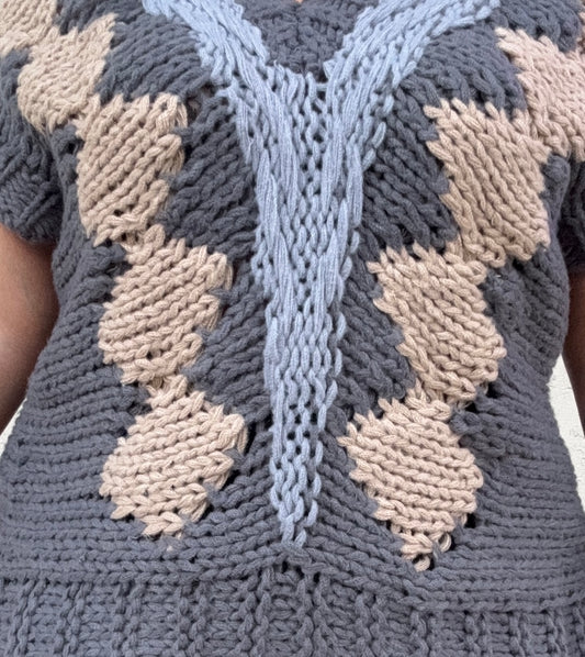 V-NECK CHINKY KNIT SWEATER VEST TUNIC