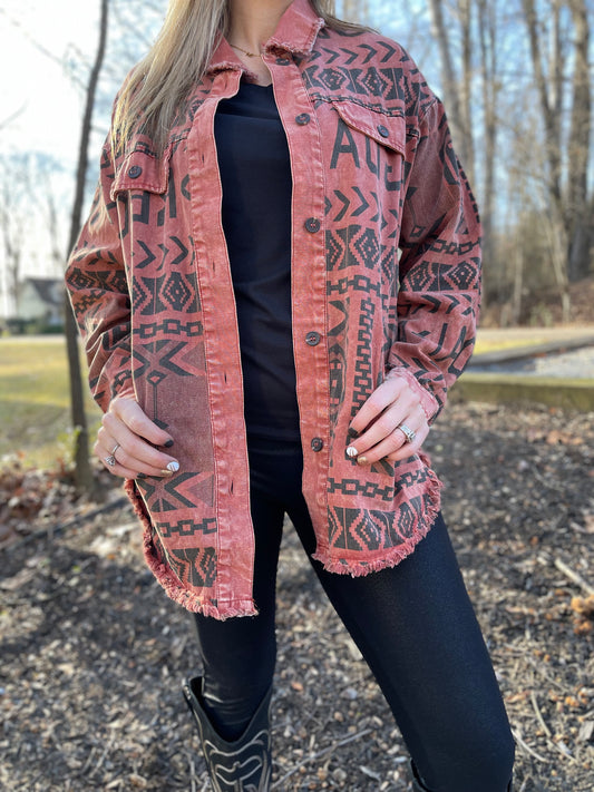 Distressed Rust colored Shacket